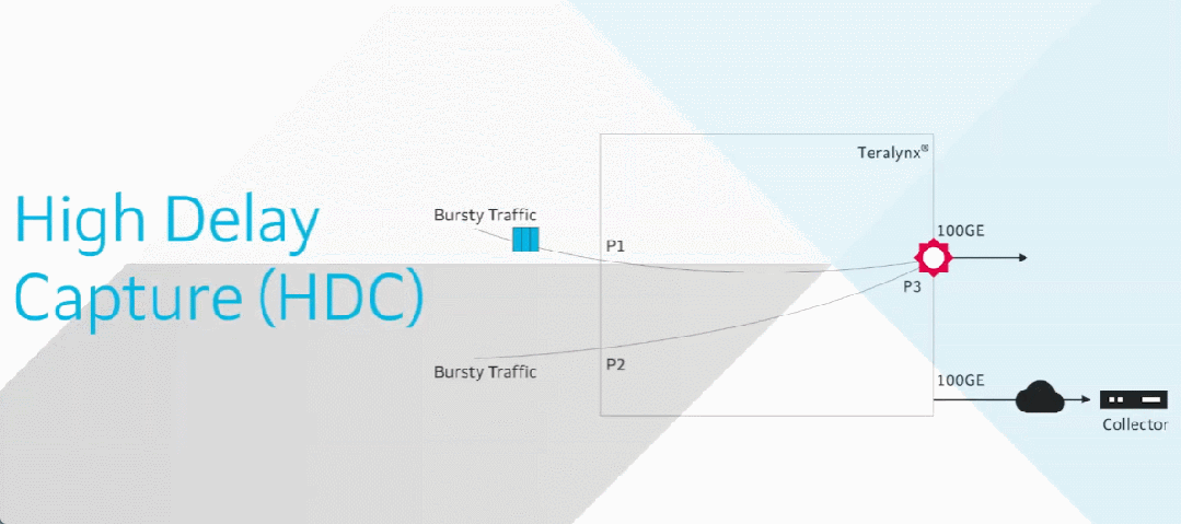 交换机设备会捕获所有超过用户设定阈值的延迟数据包,并将原始数据包的前 150 字节连同元数据打包成 HDC数据包发送至远端收集器或者本地交换设备CPU,同时原始数据包仍保持正常传输——通过监测 HDC 报文中的节点ID、累计时延和丢包数量等关键字段,帮助工程师识别出网络延迟的根本原因,辅助系统优化或排障。
