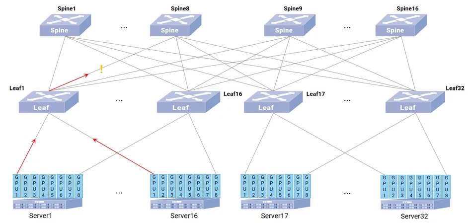 在某超千卡GPU集群的大模型训练场景中,集群依赖高性能网络实现节点间数据同步(如All Reduce操作),路径质量直接影响训练效率。IPT技术可在以下环节优化路径性能: