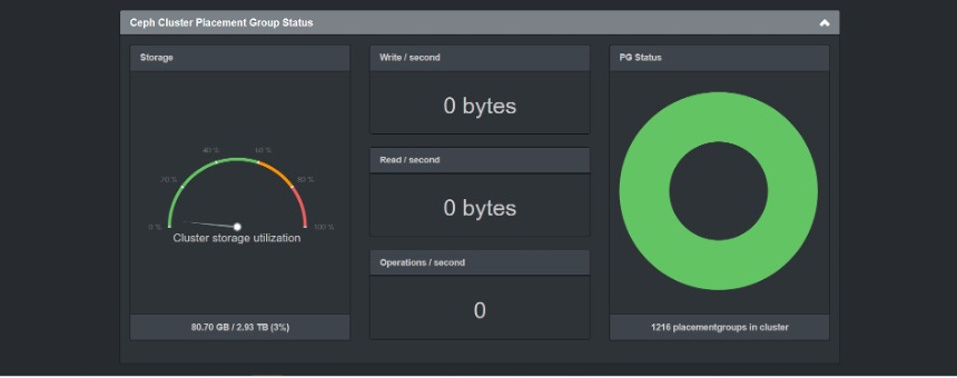 此监控解决方案是一个开源项目,使用Python Flask框架开发,界面干净、简单、整洁,风格让人感到非常舒服。虽然呈现的内容不多,只是将ceph status命令的输出进行了可视化,但是简单的开发框架和界面结构,使得它有二次开发的余地,且便于上手学习。