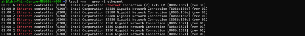 注意:[8086:1521] 是设备 ID。如果您的网卡型号不同,请将后续命令中的 8086:1521
