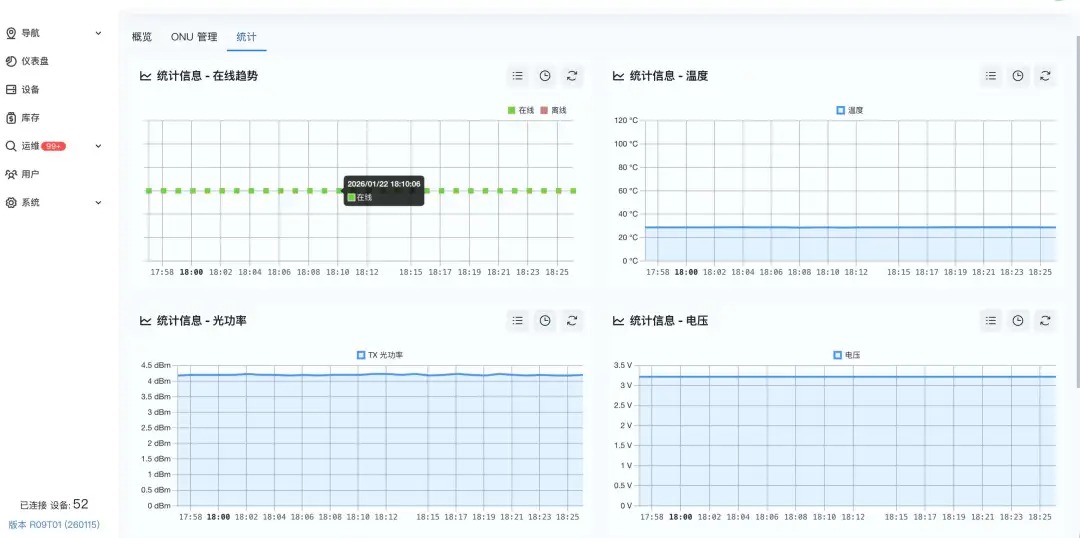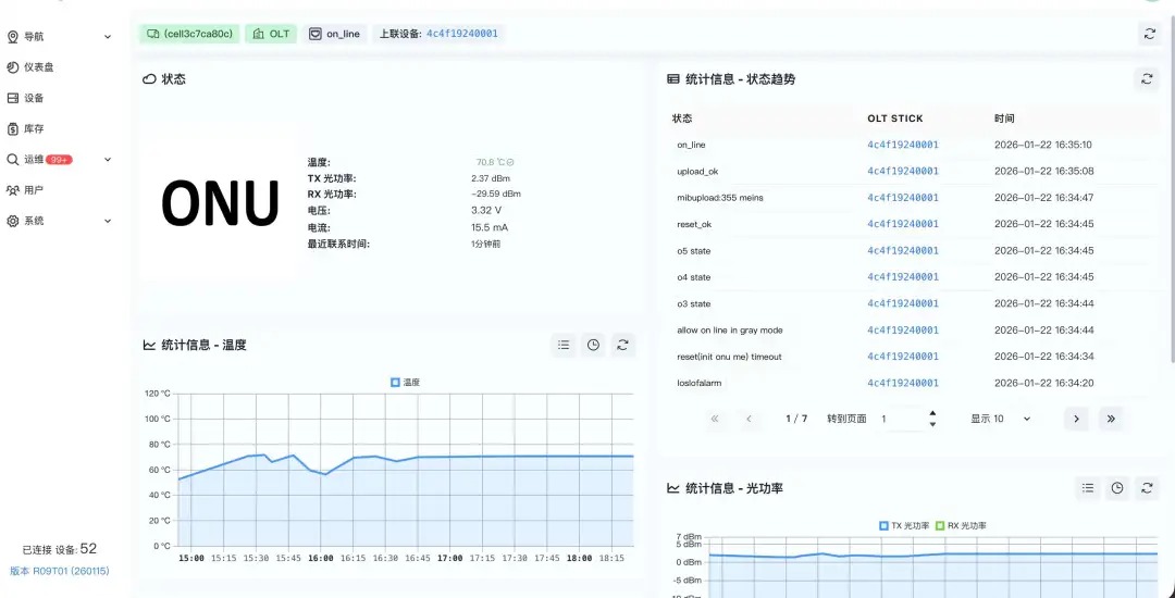 - 故障定位直观:控制器可实时监测 OLT Stick 及光链路状态,快速定位光纤中断、VLAN错误或设备故障点。